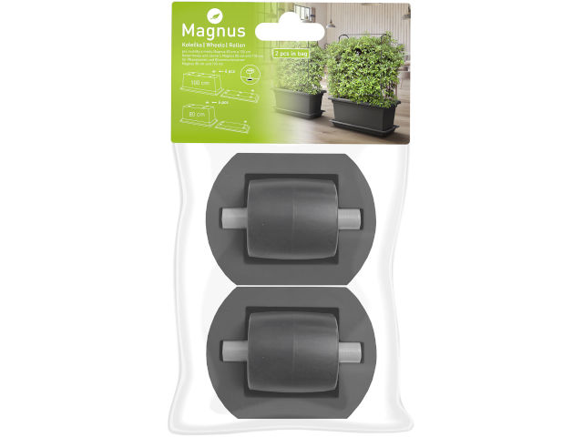 Set 2 kusů koleček je vhodný pro umístění pod truhlík Magnus délky 80 cm a 100 cm. Kolečka umožní snadnou manipulaci s truhlíkem na terase či balkónu.