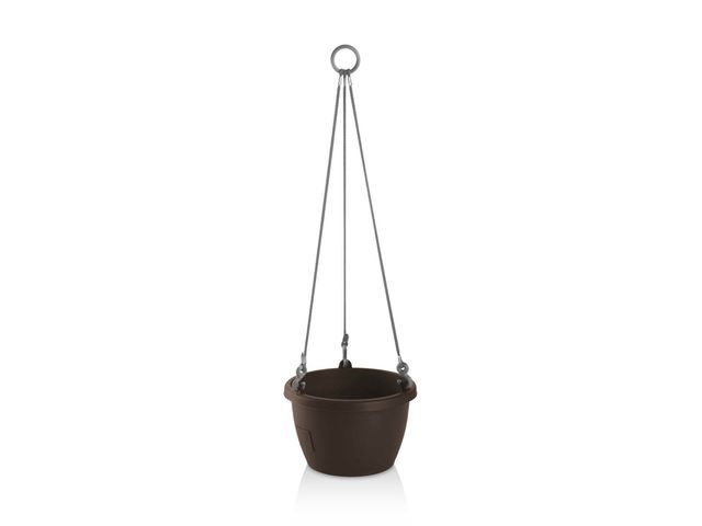 Závěsný samozavlažovací květináč MARINA o průměru 30 cm v barvě hnědé s řetízkem. Hloubka květináče je 20 cm.