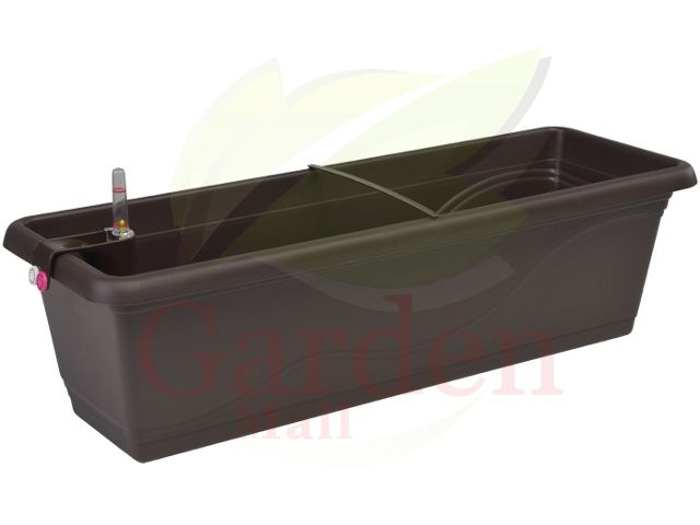 Samozavlažovací truhlík Extra Line 50 cm v barvě hnědé. 50 x 20,5 x 17h cm. Pro zavěšení je možno použít nastavitelný držák Fantazie. Kompatní, celistvé, integrované a flexibilní řešení samozavlažovacího systému, dvoukomorové technické řešení zajišťuje nepřetržité měření hladiny vody i při nalévání,datumovka pro záznam dne a měsíce informuje o posledním hnojení či zalití.
