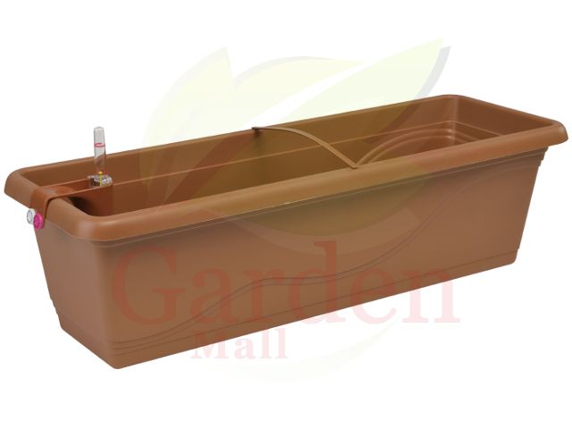 Samozavlažovací truhlík Extra Line 50 cm v barvě hnědé.50 x 20,5 x 17h cm. Pro zavěšení je možno použít nastavitelný držák Fantazie. Kompatní, celistvé, integrované a flexibilní řešení samozavlažovacího systému, dvoukomorové technické řešení zajišťuje nepřetržité měření hladiny vody i při nalévání,datumovka pro záznam dne a měsíce informuje o posledním hnojení či zalití.